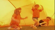 Laa-Laa listens to a voice trumpet saying the word "Orange". Then, her orange ball bounces into the house and she catches it. The Teletubbies watch some children finding out about things that are coloured orange. Laa-Laa's ball is orange. Laa-Laa keeps losing her ball, she meets the other Teletubbies with their favourite things. Tinky Winky's bag is red, Dipsy's hat is black and white and Po's scooter is pink and blue. Laa-Laa finally catches her ball. Then, the Windmill stops spinning for Tubby Bye-Bye.