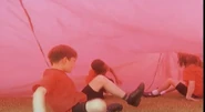 Laa-Laa and Po are asleep, but Noo-Noo wakes them up, and then they go back to sleep. A voice trumpet rises. Laa-Laa wakes up and listens to it sing about the colour Red. When the voice trumpet goes down, Po wakes up and realises that she is red. The Magic Windmill starts to spin, and the Teletubbies watch some children explore the colour red. Po wakes up as it's time to sing a song of red. A voice trumpet starts singing about red. She makes some adjustments to the Control Panel, and all the lights change to red. Then, she goes outside and continues to sing her red song. She sees three white clouds in the sky, and then they turn red. Then, she sees lots of flowers, and they all turn red, but then, the Magic Windmill stops spinning for Tubby Bye-Bye.