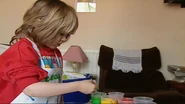 The Teletubbies hide while Noo-Noo tidies up. Whenever Noo-Noo turns around the Teletubbies go back to their hiding places. Eventually, the Teletubbies pop out and say "Eh-oh!" to the viewers. Then, they watch a girl painting a picture of her dad. After that, the Teletubbies listen to a voice trumpet singing 'Here We Go Looby Loo' and they go in, out, around and about. Then the windmill spins and the Teletubbies watch The Tap Dancing Teddy Bear dancing once before Tubby Bye-Bye.