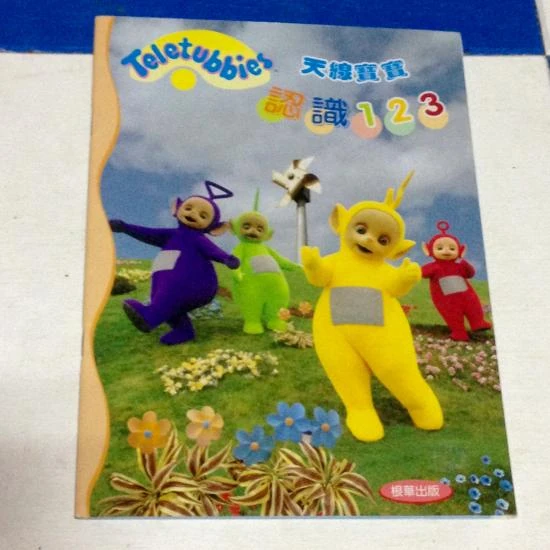 - On a Chinese Teletubbies book, the cover uses the render of the Teletubbies walking down a hill shown to the left, but with a different Windmill and sky used.