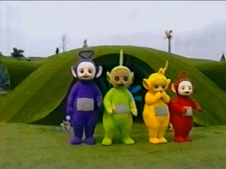 Start Spinning: Used in some episodes, and also one of the rarer animations, this is the stop-spinning animation that picks up speed. This animation was shown in Emily and Jester, when the Teletubbies bump into each other (this animation later got plastered with the normal animation in Numbers - 8 and The Pier), in Haymaking when the Teletubbies pop over the hill and say Boo and in Stop and Go. It is mostly used for TV Receiver sequences, but it can be seen for the magical event sequence in the episode Making Flowers and also its first appearance, a clip of the Windmill representing this appeared in Sophie - Art Circus after The Lion and Bear ends, but slowly.